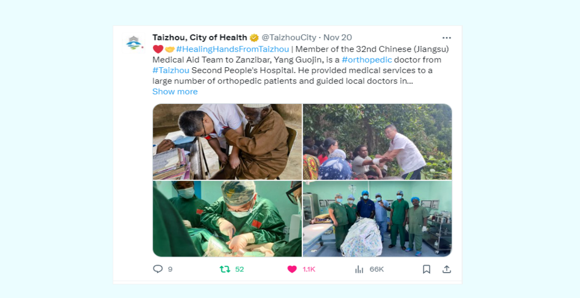 According to the work plan for the Jiangsu Province medical team sent abroad, Taizhou City independently undertook the task of dispatching the 32nd Chinese (Jiangsu) medical team to Zanzibar. The team comprised 20 members from five hospitals and one school in Taizhou City. From September 2022 to September 2023, over the course of one year, they treated nearly 70,000 patients and conducted 6,508 surgeries. Additionally, they introduced 89 new technologies and therapies. They also made 15 donations to local hospitals, schools, and orphanages, composing a song of friendship that transcends mountains and seas.