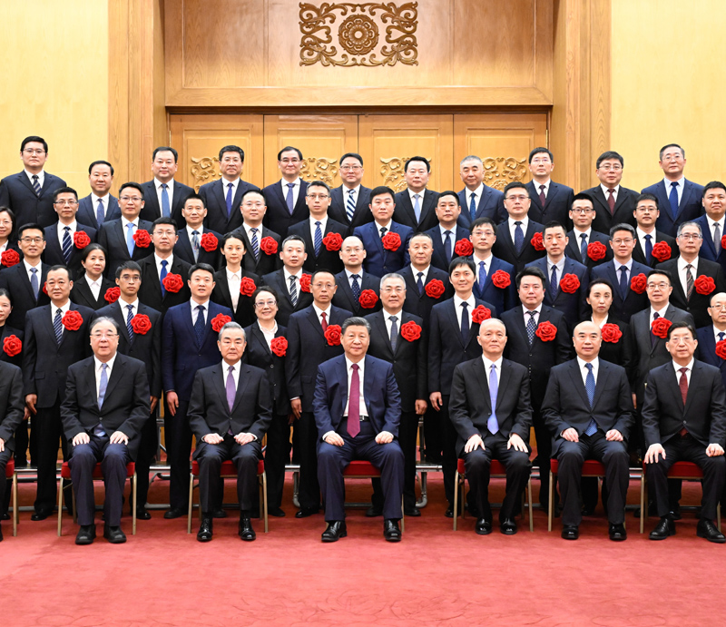 At around 11:30 am, Xi and others arrived at the East Hall of the Great Hall of the People amid a warm round of applause. Xi and others waved to the representatives and had a cordial exchange with them before taking a group photo together.