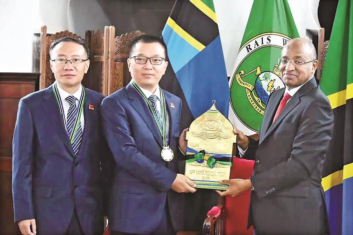 临近回国的9月11日,坦桑尼亚桑给巴尔总统姆维尼接见中国(江苏)第32期援桑给巴尔医疗队,并为全体队员颁发奖章及纪念证书。姆维尼说,医疗队为桑给巴尔人民的健康和桑中友谊作出了突出贡献。他感谢中国政府长期以来对桑给巴尔卫生事业发展的援助。