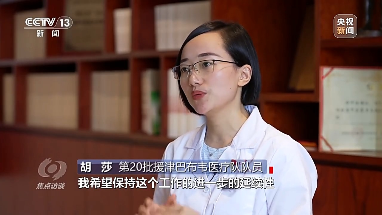 第20批援津巴布韦医疗队队员胡莎:我这次申请了中国第21批援津巴布韦医疗队的继续留任工作,我希望保持这个工作的进一步延续性,其实中医并不只是针灸,还有很多博大精深的治疗方案,尤其是中医药。我们现在正在推动中医药在津巴布韦的注册,我希望把更多的中医治疗方案带到非洲,带给非洲人民。