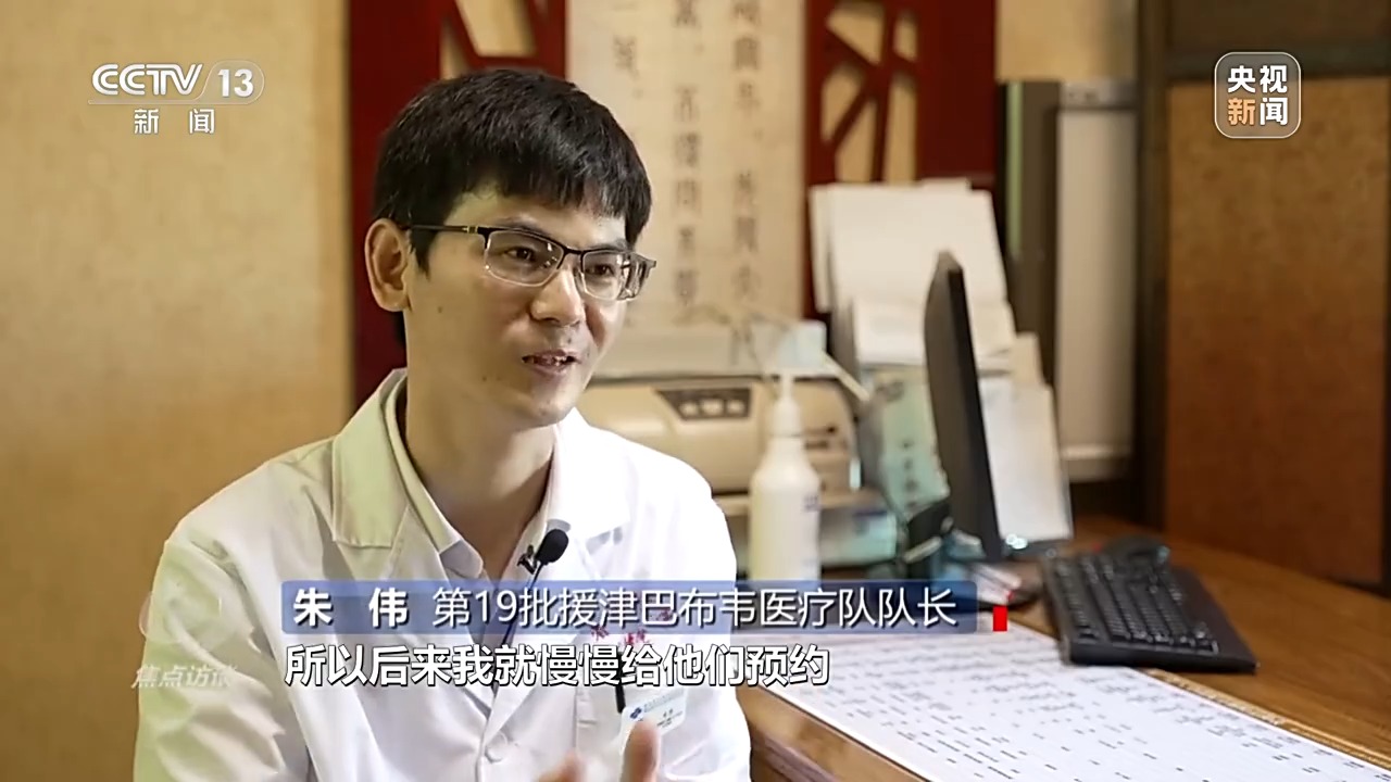 第19批援津巴布韦医疗队队长 朱伟:病人到60个的时候,工作强度太大了,后来我就慢慢给他们预约,培养当地的针灸人才,这样就更容易推广。去年我在那里就培养了十个学员,他们自己能做,当地也是看到中医针灸的效果,所以他们很多人想学。