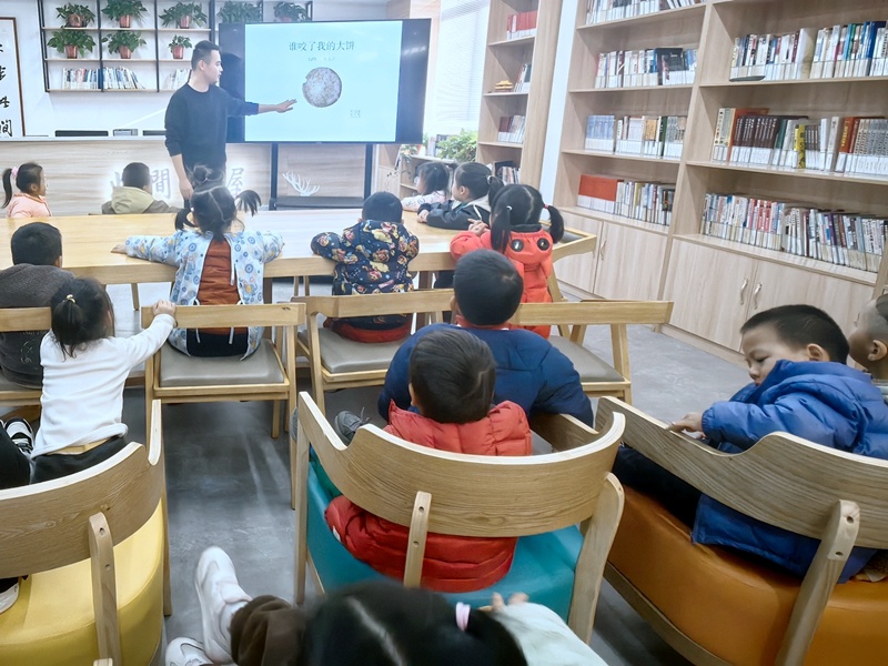 最是书香能致远。2023年12月5日下午,江花幼儿园部分师生走进八圩村此间书屋,开展“阅读润童心 书香伴成长”主题活动。活动中,志愿者老师带领小朋友阅读绘本故事、观看“护苗”行动视频,还给小朋友们发放“绿书签”并普及“绿书签”的含义,引导孩子们多读书、读好书。