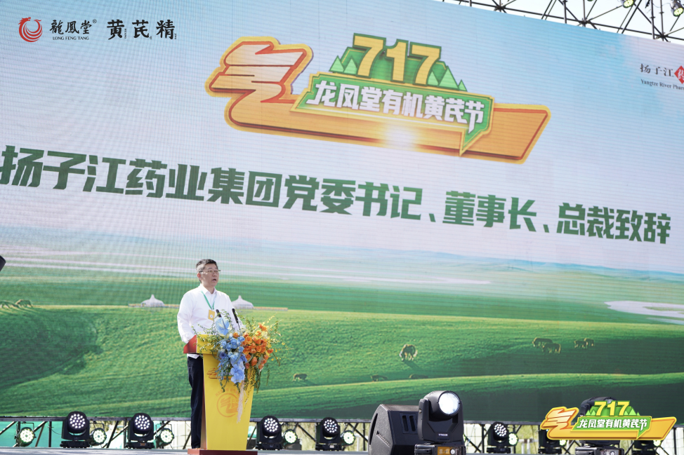 7月19日,“有机好黄芪,自然有底气”龙凤堂首届717有机黄芪节在内蒙古固阳县举办,扬子江药业集团与固阳县委县政府携手产业链上下游,共话有机好黄芪,共绘产业新蓝图。固阳县委书记姚俊杰,县委副书记、县长侯永峰,扬子江药业集团党委书记、董事长、总裁徐浩宇及多家连锁药店头部企业代表共同出席开幕仪式。