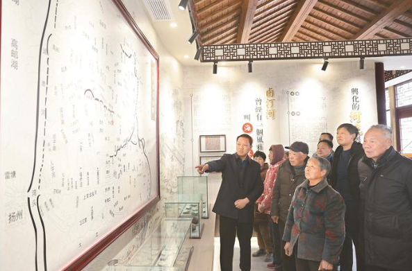 “早在明朝的时候,这里曾设立巡检司,后多次被大水冲毁,又多次重建,到了咸丰、同治年间,宁乡巡检司彻底荒废……”2月4日,在兴化市陈堡镇宁乡村新建的明巡检司景点,村党总支书记姚贵远正在为村民及游客介绍古村的历史文化。