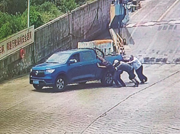 让我没想到的是,他们竟然喊来了七八个同事帮忙。那天天气很热,室外温度估计有38℃,七八个工作人员顶着烈日帮我推车,看着他们汗流浃背的样子,我真的很感动。车被推上岸后,我赶紧从车上拿了些冷饮硬塞给了他们。