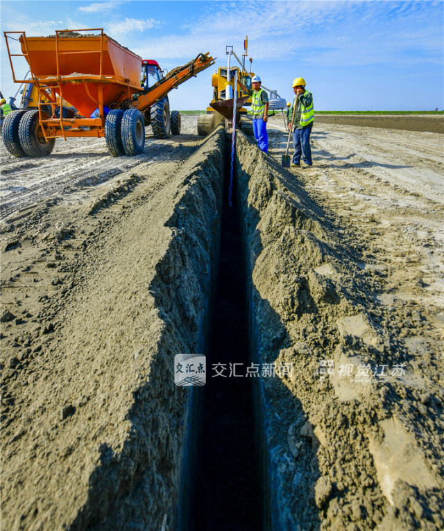6月5日,施工人员张炳涛实施土壤脱盐降碱核心工序——埋设暗管,构建地下排盐系统。