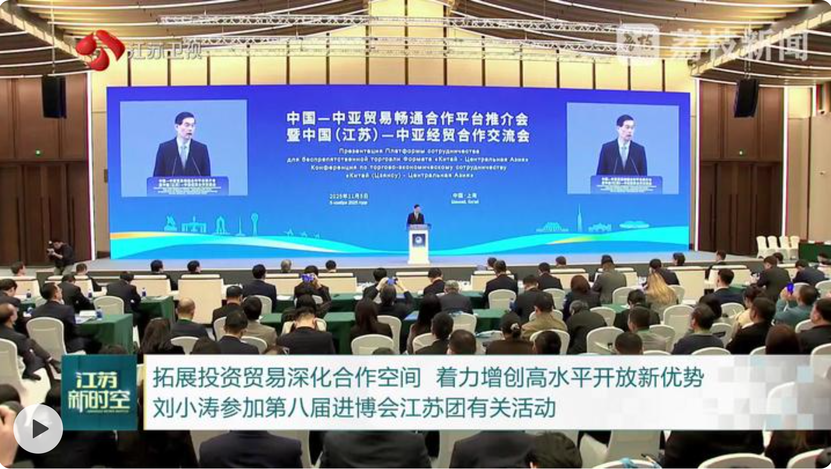 在中国—中亚贸易畅通合作平台推介会暨中国(江苏)—中亚经贸合作交流会上,刘小涛与中亚各国工商界人士叙友谊、谈合作、谋发展。他说,我们将全面落实习近平主席和中亚各国元首达成的重要共识,以“中国中亚合作高质量发展年”为契机,高质量建设运营好中国—中亚贸易畅通合作平台,进一步畅通互惠互利的贸易流,培育密切协作的产业带,构筑互联互通的交通网,积极构建全方位、多层次、宽领域的经贸合作体系。热忱欢迎各位企业家共享“一带一路”高质量发展新机遇,共创江苏与中亚合作美好未来。会上,商务部副部长兼国际贸易谈判副代表凌激,哈萨克斯坦贸易和一体化部部长阿尔曼·沙卡利耶夫,乌兹别克斯坦投资、工业与贸易部副部长伊尔扎特·卡西莫夫先后致辞,哈萨克斯坦阿克莫拉州签署投资发展中心入驻合作平台等协议。