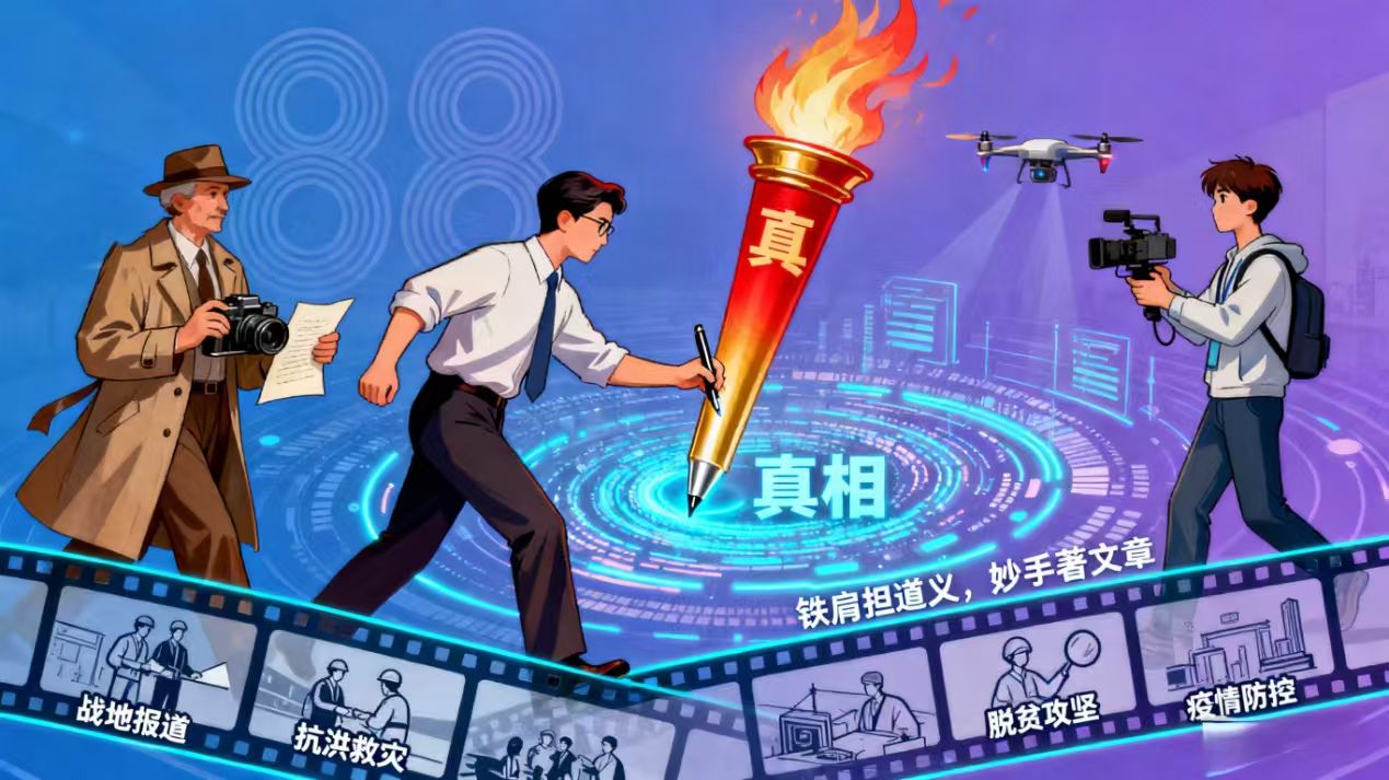 88载风雨路,铁肩担起的是道义。回望1937年,中国记协的前身于民族危亡之际诞生,一代代新闻先驱以笔为枪,在烽火连天中传递民族的呐喊,书写救亡图存的壮丽史诗。从那时起,“铁肩担道义,妙手著文章”便融入了中国新闻人的精神血脉。八十八年来,这份道义,是范长江穿越中国西北的实地考察,是穆青笔下焦裕禄那“心中装着全体人民,唯独没有他自己”的公仆情怀,是无数记者在抗洪抢险、抗震救灾、脱贫攻坚、抗击疫情一线的不畏艰险、逆向而行。记录伟大时代,讲好中国故事,新闻工作者是时代的瞭望者、记录者,也是建设者、推动者。