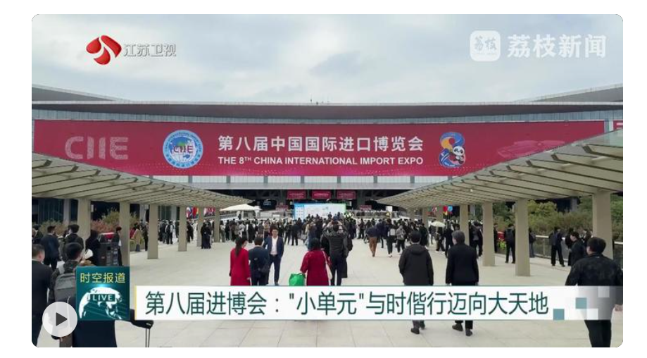 荔枝新闻中心记者范洁萍说:“进博会上充满了发展机遇,不管是行业巨头还是中小企业,都可以共享。现在正在进行的是江苏昆山张浦镇的专场推介会,他们以‘镇’为单位,带着优势产品在全球客商面前组团亮相!”