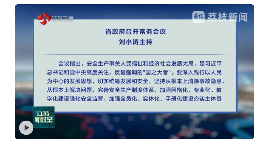 11月7日,省政府召开常务会议,深入学习贯彻党的二十届四中全会精神和习近平总书记关于安全生产的重要论述,审议《关于推进安全生产“六化”建设的实施方案》,部署下一阶段工作。省长刘小涛主持会议。
