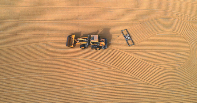 夏济兵介绍,新曹农场第一时间成立“三秋”指挥部,形成由主要领导牵头、农业分管负责人一线指挥、部门全员参与的“三秋”工作专班,每日汇总秋收秋种数据、调度农机力量。据统计,共组织场内180多台农机具及300多台套社会化农机具及时收割运输,全场60个水泥晒场、4条日烘干2800吨的大型烘干线接连上场,在此保障下,亩产预计达1110斤,与去年基本持平。