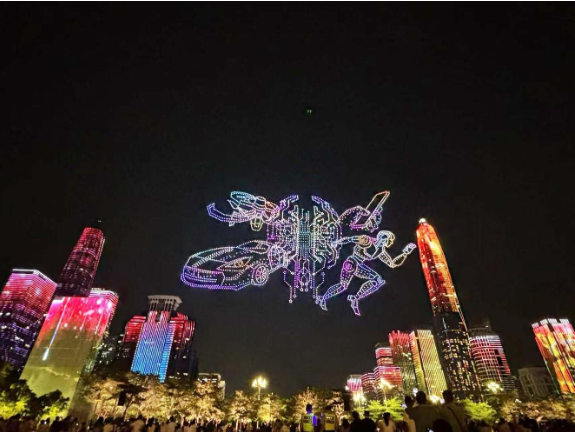 绚烂的无人机表演场景。李彬彬 摄