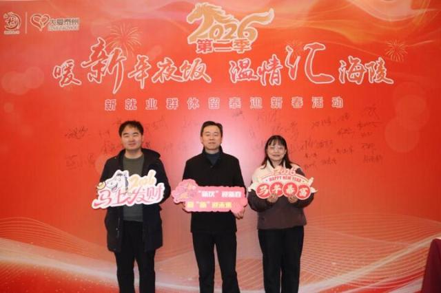 交汇点讯 暖“新”年夜饭,温情汇海陵。日前,泰州市海陵区举办新就业群体留泰迎新春活动举行,百余名社会各界代表齐聚一堂,以一顿暖意融融的团圆年夜饭致敬平凡的城市使者,传递社会温情,凝聚新兴领域发展合力,让留泰新就业群体感受这座城市的温暖。