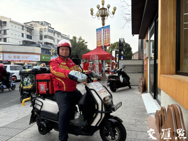 “跑外卖八年了,春节一直在线的!”新年将至,外卖小哥刘凌云比往常更加忙碌。下午两点,他将电瓶车停放在泰州姜堰凤凰广场亲“新”驿站外,走进去稍作休息。摘下头盔、口罩,他被冷风吹红的脸上挂着笑容,“今天已经顺利完成25单了”。