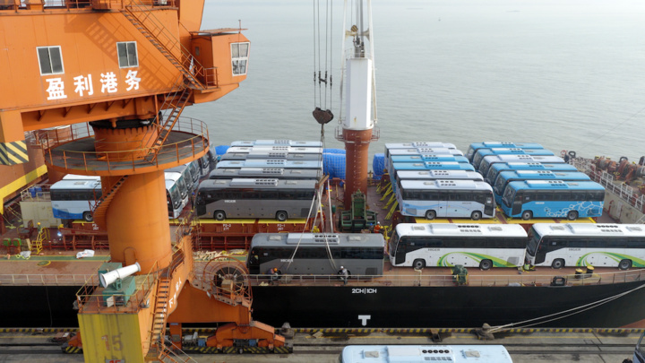 随着国产客车登船出海步伐不断加快,靖江口岸通关效率的重要性随之凸显。靖江海关监管一科科长丁亮介绍,靖江海关提前制定专项保障预案与“一企一策”工作方案,聚焦通关保障,开设客车出口专用通道,推行“提前申报+预约查验”等便利措施,大幅压缩通关时长,有效降低企业物流成本,确保首批客车出口零滞留、零延误。