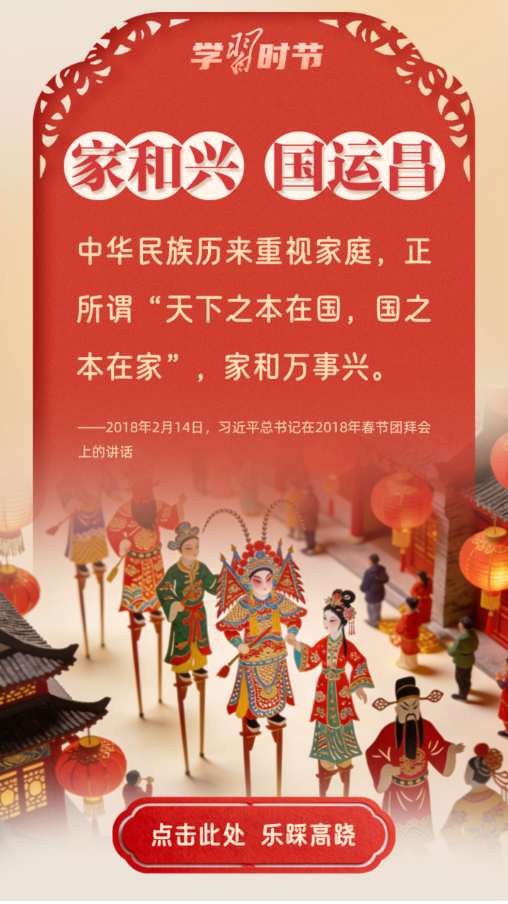 “每个‘小家’热气腾腾,中国这个‘大家’就蒸蒸日上。”家庭的冷暖悲欢,始终与国家民族的前途命运紧紧相连。总书记多次深情寄语,深刻道出家与国休戚与共、血脉相依的深厚联结。